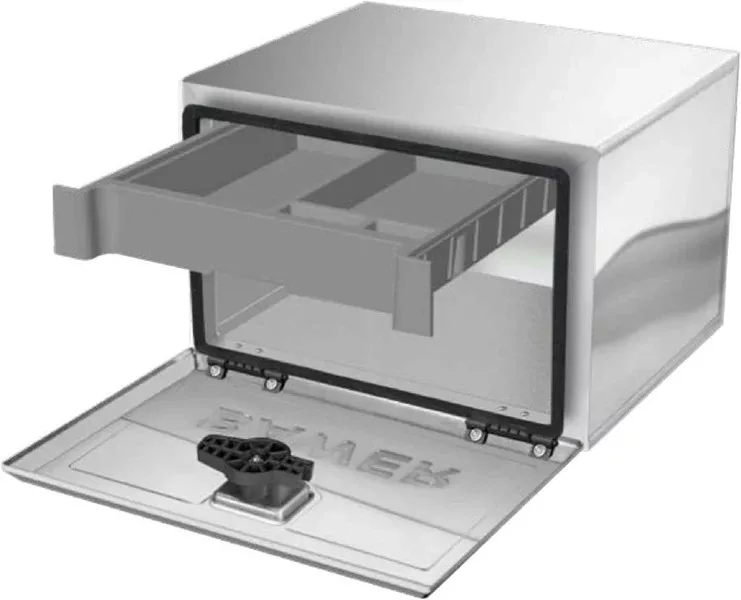 Cutia de scule 500 x 350 x 400 este o soluție practică și rezistentă pentru camioane, remorci și vehicule cu suprastructură, dar și pentru ateliere sau service-uri. Este ideală pentru depozitarea sigură a sculelor, accesoriilor de fixare și a pieselor mici, într-un spațiu bine organizat și protejat de praf și apă. Datorită încuietorii integrate cu cheie și a etanșării eficiente, conținutul rămâne în siguranță în utilizarea de zi cu zi. Produsul are omologare LPD, ceea ce înseamnă că îndeplinește și rolul de protecție laterală împotriva subtrecerii; acest lucru este confirmat de marcajul E8 73R-0110379 de pe lateral.