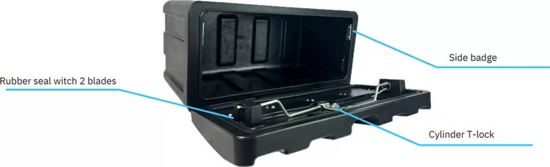 Cutia se montează în poziție verticală, cu capacul rabatat, pe un punct de fixare solid. Este important ca montajul să nu obstrucționeze elementele mobile ale remorcii și să permită deschiderea completă a capacului. Este recomandată pentru șoferi profesioniști, firme de transport și service-uri care au nevoie de o soluție robustă de depozitare externă.