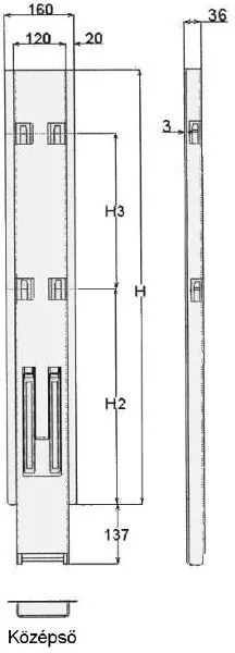 | Înălțime | H = 1000 mm, H2 = 500 mm, H3 = 350 mm |